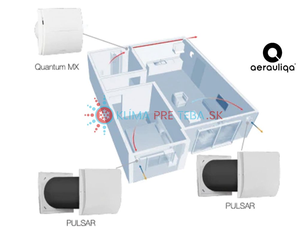 Lokálna rekuperácia PULSAR 150 (Aerauliqa) – 60 m³/h, keramický výmenník, IR ovládač