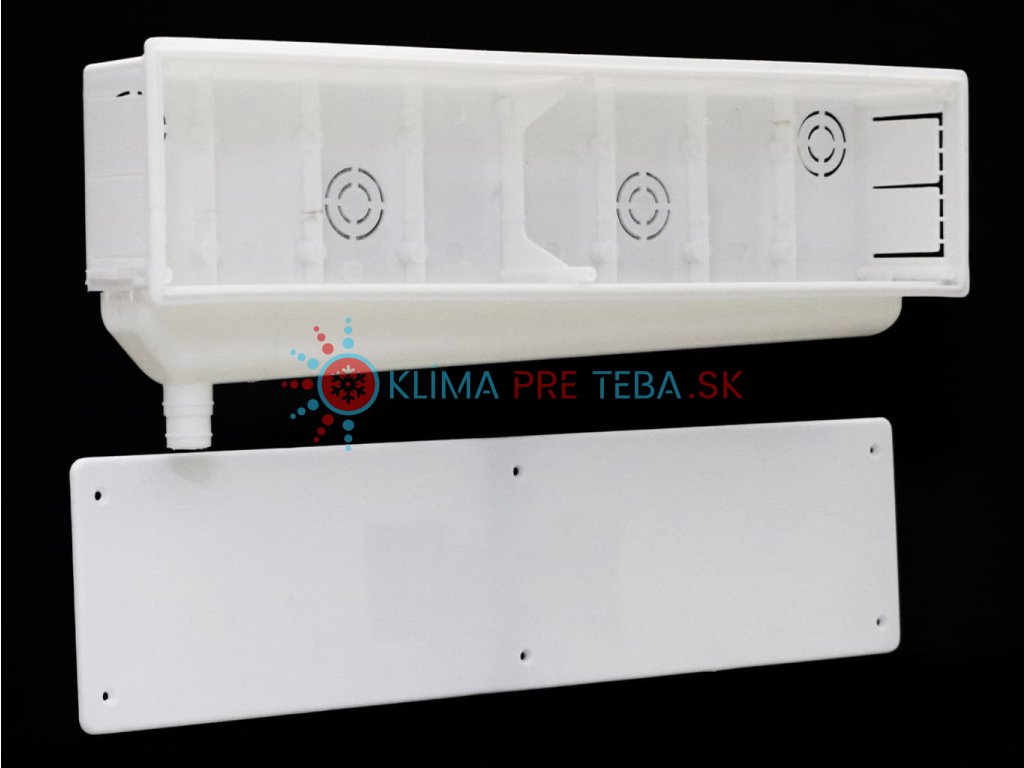 Podomietková krabica je určená na zabudovanie rozvodov klimatizácie pod omietku. D:43,5 Š:11, V:6,5 cm