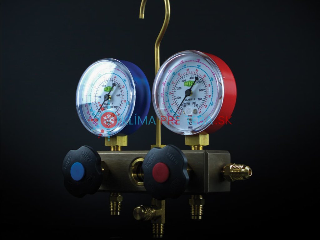 Nízkotlaký manometer určený pre chladiace a klimatizačné systémy.