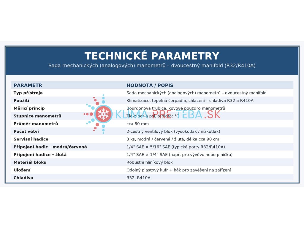 Sada je primárne určená na prácu s chladivami R32 a R410A, ktoré sa používajú v moderných klimatizáciách a tepelných čerpadlách.